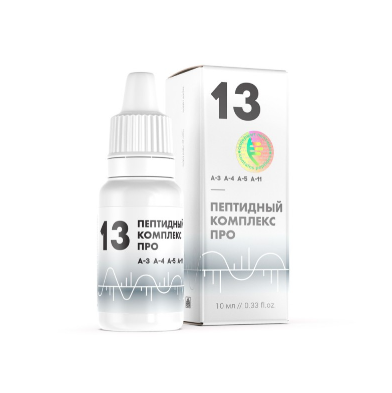 ПК ПРО-13 - пептидный комплекс для комплексной поддержки органов зрения и слуха на основе натуральных пептидов сосудов (A-3), хрящевой ткани (A-4), головного мозга (A-5) и тканей глаза (A-11). Формула направлена на улучшение микроциркуляции и трофики тканей, поддержку нейрональных и сенсорных структур, а также нормализацию обменных процессов в сетчатке и зрительном анализаторе. ПК-13 Pro применяется в программах поддержки при дегенеративных изменениях сетчатки, начальных стадиях глаукомы и катаракты, ангиопатии сетчатки на фоне гипертонии и диабета, а также при спазме аккомодации, атрофии зрительного нерва и начальных формах нейросенсорной тугоухости.